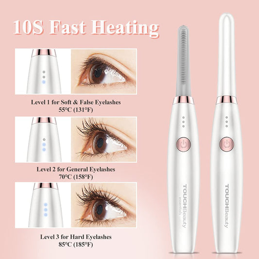 Heated Eyelash Curler, Updated Electric Eyelash Curler for Soft and Short/Long Eyelashes, USB Rechargeable, Quick Natural Curling and Long Lasting, 3 Temperature Modes TB-1859 White